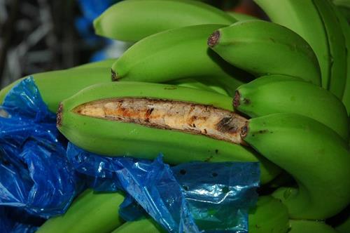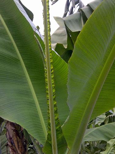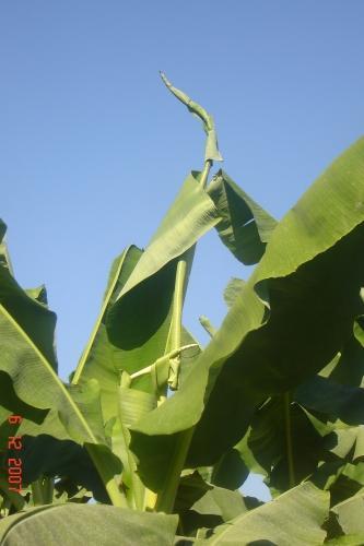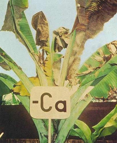 Calcium deficiency causes the banana leaves to become chlorotic and later light brown necrosis appears from the top of the leaves.