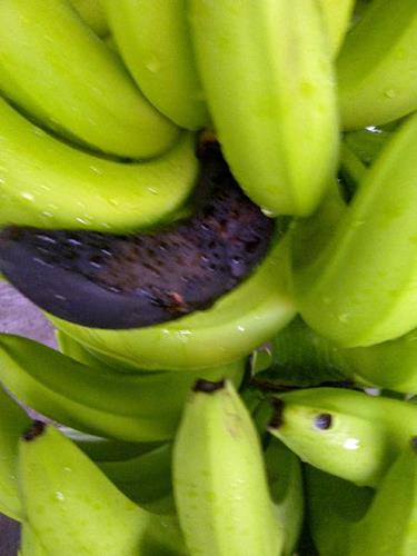 Fruit damage, caused by splitted peel and rotten fruit flesh.