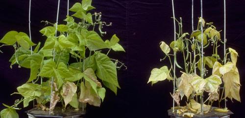 Growth is severely stunted, flowering and pod development are inhibited. Starting on older leaves the foliage turns pale green to yellow and dies off as deficiency continues.
