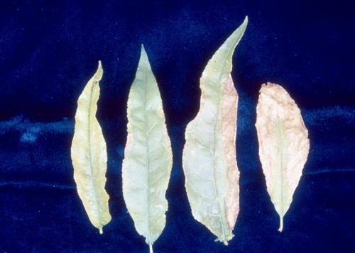 S deficiency causes chlorosis, starting on young leaves. Leaf veins are pale, too.
