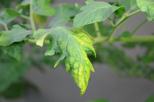 The symptoms are sometimes visible in field grown tomatoes, too.