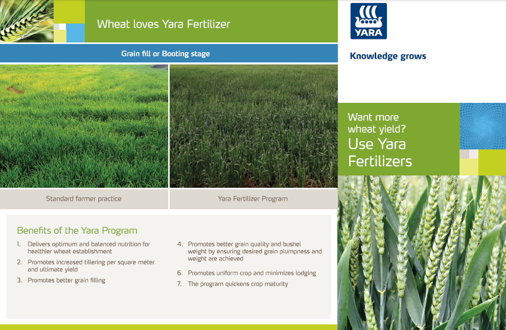 The two key yield components of wheat are grain numbers per unit area, and the individual grain weight. High yields come from achieving the correct leaf and shoot numbers, maintaining a green leaf canopy, increasing grain numbers/ear and grain size.